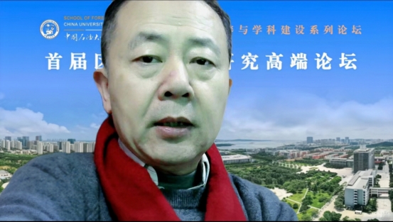 中国国际关系学会副会长、国际关系公司董事长陶坚教授以“推进区域国别研究的几点思考”为题作主旨发言。陶坚教授指出区域国别研究学科对服务国家战略和外交大局具有十分重要的意义,区域国别研究应以更近的距离、更深的维度、更高的层次来认识周边世界,密切关注时代背景,做到“知彼时不我待,知己永远在路上”。陶坚教授认为,学者们的研究应起自学术,终及国家,不断寻找新的学科研究增长点。