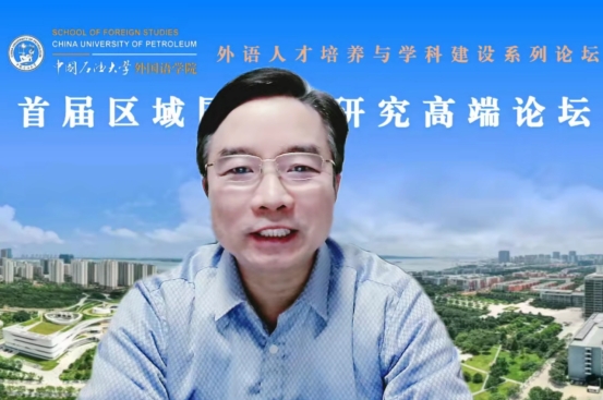 国家社科重大项目首席专家、国务院学位委员会外语学科评议组成员、教育部高等公司英语专业教学指导委员会委员、中国人民大学郭英剑教授以“国际传播与外语学科的未来发展”为题作主旨发言。他以中国人民大公司系学科设置为例,从概念、内涵、定位、内容、人才培养等五个维度阐述了国别与区域研究对外语学科发展的新启示。他指出,外语学科具有多语种、跨文化、多学科等三大优势,外语人才肩负着国际传播的使命。