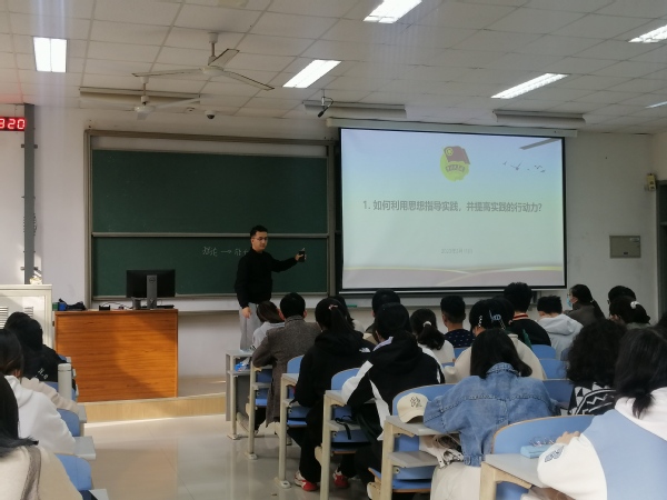 团课第一讲以互动课堂的形式进行,针对新生提出的生活、学习和思想三方面的困惑,大学长及培训班成员进行了详细解答,最后由王人立对同学们的发言进行总结和点评。