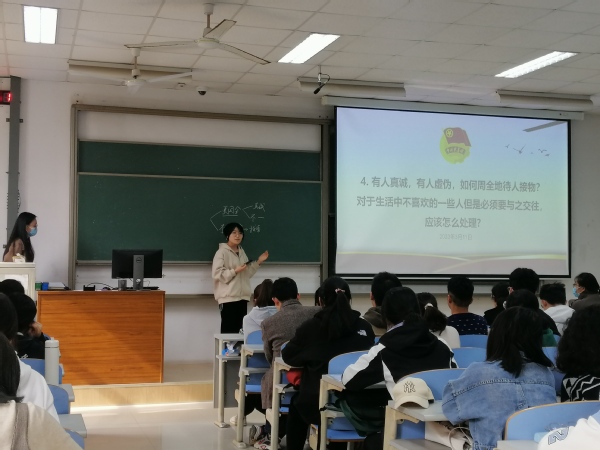 在生活方面,俄语2001班张世锦分享了三个关键词:“信念”“定制化”“清晰度”,建议同学们尝试踏出舒适圈,找到适合自己的目标,明确自己的定位;针对自卑这一问题,英语2202班李君涵建议大家在遇到困难时进行积极的自我暗示,通过沟通交流拓宽视野,消除焦虑;关于社交,俄语2202班李金鹏也提出了自己的见解,他认为专注于自己分内的事可以减少不必要的社交。在学习方面,俄语2201隋欣月表示,每个人都是一个点,通过学习发散拓展,由点及面,最终形成一个圆。在思想方面,俄语2101班苏莱曼认为,思想理论与社会实践相辅相成,建议同学们立足于理论知识,积极参与社会实践锻炼各种能力,将能力转化为行动力;在谈到如何提升辨别是非的能力时,英语2202班杨斌表示,个人立场不同导致是非观念不同,每个人都应以客观的眼光看待问题。
