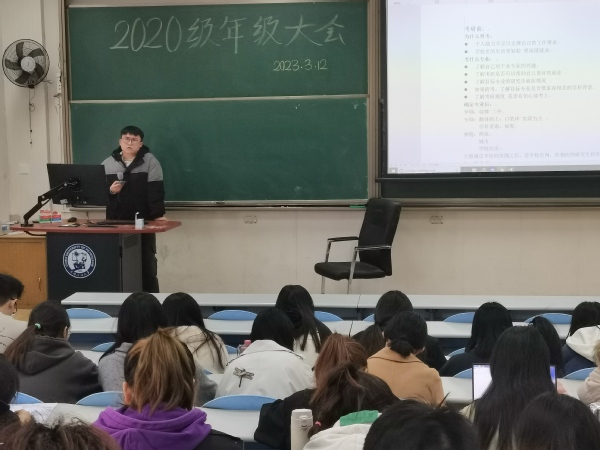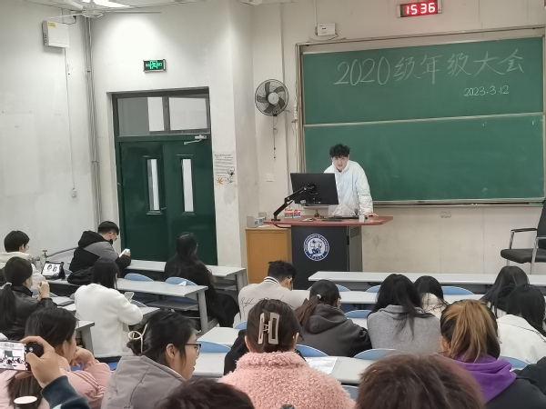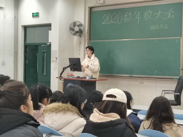 3月12日下午,申博sunbet于东环102举行2020级本科生年级大会。本次会议由郭翠春主持,辅导员相欣余和2020级全体员工参加。