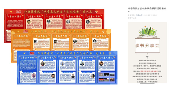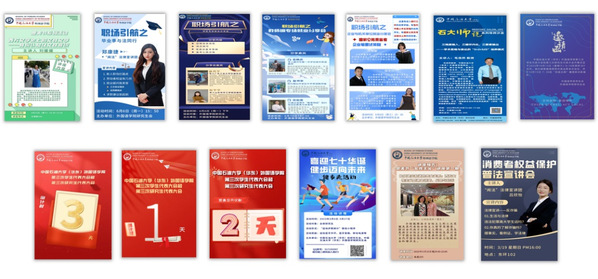 研究生会多形式多平台开展宣传工作,着力提升宣传质量和效率,过去一年在微信公众号“外院心声”和“外院e说”共发布推文15篇;在公司官网发表新闻16篇;在中国石油大学新闻网投稿并发出新闻2篇;宣传部部长汪庚辰在中国石油大学研究生会官方微信编辑推文6次;研究生会制作精美活动宣传海报、邀请函共13张。致力于打造对外宣传的窗口,推广外院活动,彰显外院风采。