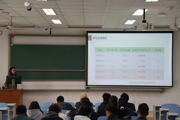 辅导员王人立对2022级第一学期的学习成绩进行了总结分析,评估了各班总体学习情况,并对当前员工第二课堂成绩进行了介绍,提醒员工们仔细研读本科生培养方案,明确课程要求和大学各阶段的任务,做好学期规划,鼓励员工们在新学期要更加奋进,在平衡学业和员工工作的基础上,积极参与丰富多彩的二课活动,不断提高综合素质。
