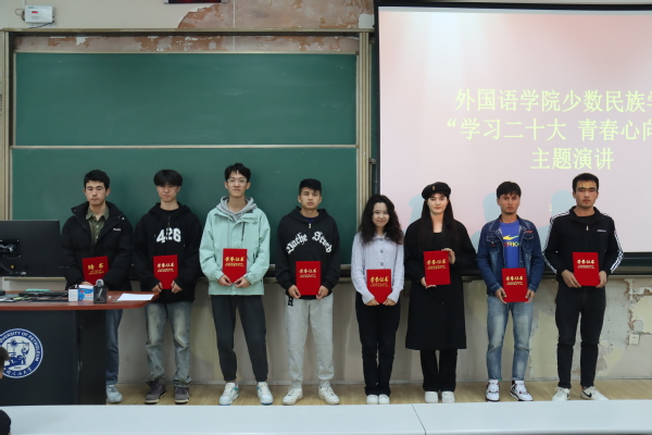 本次活动共有34位少数民族员工参加,选手们通过精美的PPT、背景音乐、视频等形式,以学习宣传贯彻党的二十大为主线,结合家乡的发展变化,讲述个人成长、奋斗的青春故事,抒发对党的诚挚热爱和深厚感情,展现出青年老员工爱党爱国的心声。英语2202班卡迪尔娅•居拉提针对两个一百年奋斗目标,阐释了新时代青年的责任与担当;俄语2201班艾丽菲热•艾力结合自己在内高班的求学经历,表达了对祖国的感激之情,表明自己未来努力的方向;俄语2202班苏日娜则通过少数民族人民无私奉献的感人事迹,提出要勇担时代使命,争做有为青年。经过激烈的角逐,俄语2201班金超逸、俄语2101班苏来曼•阿卜来海提获得一等奖,俄语2102班布买力艳木·艾合买提等三名选手获得二等奖,英语2203班冯宇等五名选手获得三等奖,俄语2101班麦麦提艾力·麦提托合提等二十四名选手获得优胜奖。俄语2201班金超逸表示:“此次主题演讲活动不仅为我们提供了一个展示自己的舞台,同时有利于增进员工间的交流,促进师生情谊,增强民族团结。”