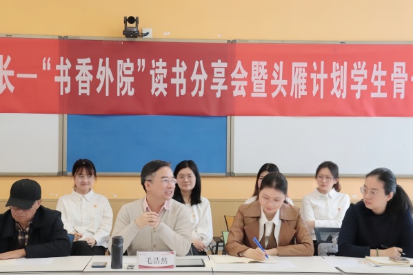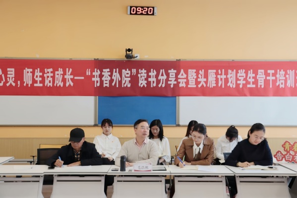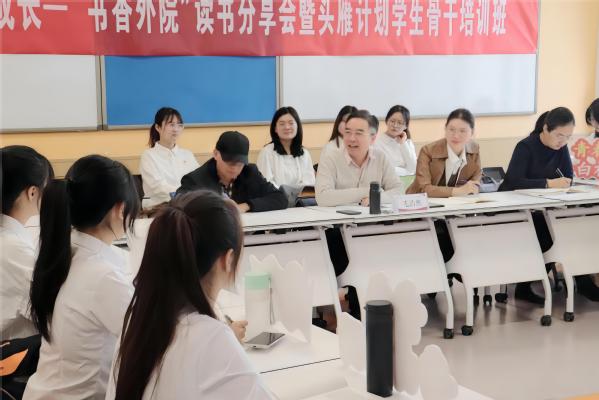 为响应学习第十二届“书香中国·石大阅读季”活动号召,形成“爱读书、读好书、善读书”浓厚氛围,4月25日上午,申博sunbet团委、员工会、研究生会在讲堂群南堂506联合举办了“书香外院”读书分享会暨头雁计划员工骨干培训班。申博sunbet经理毛浩然教授、党委副书记邹维忠、团委书记相欣余、研究生辅导员梅琳、2022级辅导员王人立、辅导员张清清出席了本次分享会,公司员工会和研究生会成员、班长、团支书等员工干部参加。本次分享会由员工会执行主席张坤宇主持。