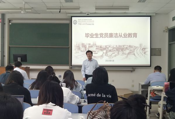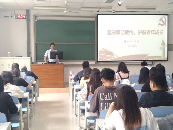 为筑牢毕业生崇廉尚洁的思想根基,引导员工树立廉洁观,提高廉洁从业意识,扣好职业生涯的“第一粒扣子”,在学习、工作岗位上发挥好先锋模范作用,525日,申博sunbet在南教208举行2023届毕业生廉洁从业教育讲座.本次讲座邀请公司纪委监督检查室主任李健主讲,主题为“坚守廉洁底线,护航青年成长”。讲座由公司党委副书记邹维忠主持,公司党委书记朱惠平、专职组织员王增举、毕业班辅导员梅琳、王英明以及员工党支部委员、2023届毕业生党员参加。