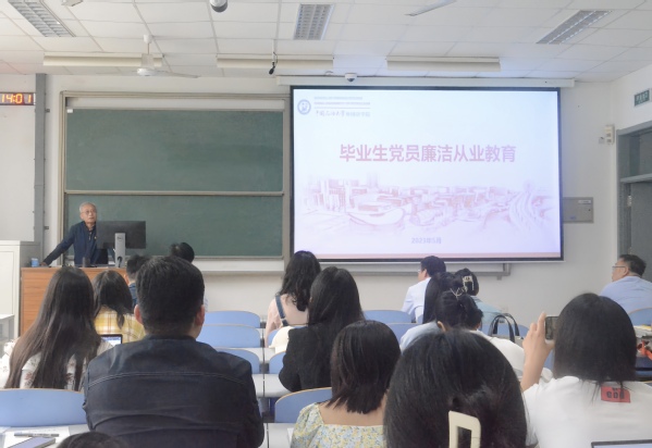 李健老师以五个问题贯穿始终,分别是“腐败离青年人有多远”“什么是腐败”“什么是廉洁”“当前反腐的形势”和“作为青年毕业生,如何让廉洁护航人生”。李健老师通过丰富的案例,提醒并教育同学们在面对人生道路上的各种压力和诱惑时,要牢牢守住自己的初心,树立并坚守正确的世界观、人生观、价值观。李健老师对毕业生党员提出五点希望,一是要深化对廉洁从业的认识,扣好价值取向的第一粒扣子;二是要坚守初心,把好人生的总开关;三是要依规用权、时刻心存敬畏;四是要培养健康爱好,坚守法纪底线;五是要时刻严以修身,保持廉洁定力。他讲到,刚参加工作不久的青年干部,正处在由公司到单位的“人生紧要处”,人生的第一粒扣子怎么扣,职场的第一步怎么走,是每一位青年干部都必须答好的人生考题。