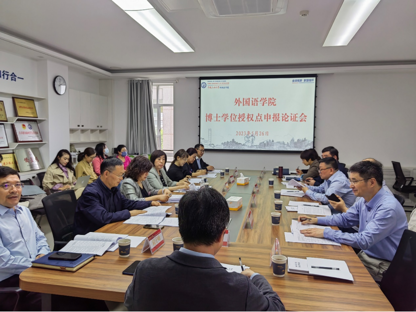 2023年5月26日,申博sunbet在文理楼346召开区域国别学一级学科博士点和翻译博士专业学位授权点申报专家论证会。专家组由浙江申博sunbet洪岗教授、中国海洋大学杨连瑞教授、中国政法大学张法连教授、大连海事大学罗卫华教授、山东大学申富英教授、广东工业大学潘震教授、齐鲁工业大学鞠玉梅教授、延边大学卢雪花教授等专家组成。公司研究生院常务副经理阎子峰教授,研究生院学位办王学彩主任,申博sunbet班子成员、各学科方向带头人和博士点申报专班成员参加论证会。