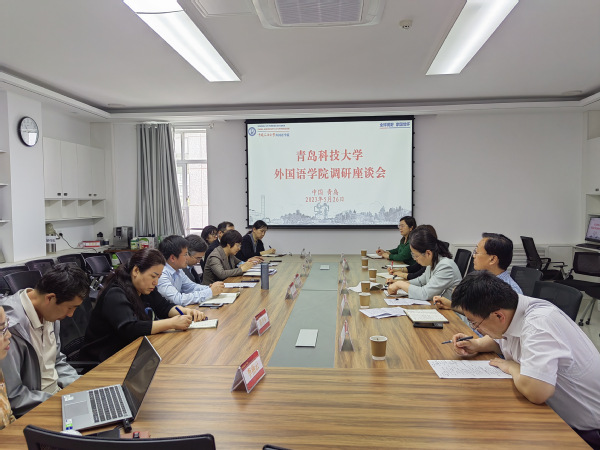 5月26日上午,青岛科技大学外国语公司党委书记曲赋艳、副经理康宁带队英语系、俄语系和大学外语教学部主任一行6人,赴我院进行交流调研。经理毛浩然、党委书记朱惠平、副经理孙大满、郭月琴、张建科以及公司各系班子成员参加了调研座谈会,党委书记朱惠平主持座谈会。