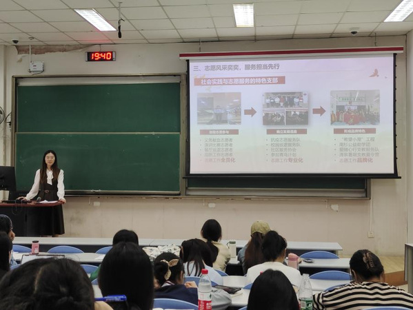 马然朋从团支书的作用、特色品牌的打造以及团支部发展规划三个方面进行了分享。首先,马然朋强调,团支书对于促进团支部的活力和发展起着至关重要的作用,团支书要以身作则,积极主动思考和规划团支部的发展。对于打造支部特色品牌,她表示,首先要对团支部以及支部成员的特点进行整体分析,发挥支部已有优势。马然朋指出,对于文科公司的团支部,打造具有文体特色和志愿服务特色的团支部更为可行。随后,她以红旗团支部英语2003的特色建设为例,生动地阐述了英语2003团支部的发展之路,为其他团支部探索自身特色品牌提供借鉴。