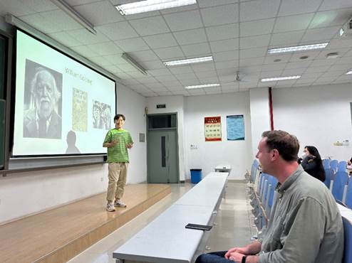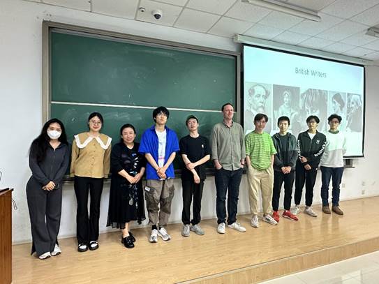 “脚步不能丈量的地方,文字可以;眼睛到不了的地方,文字可以。”为了激发同学们读书的热情,加强对英国文学的了解,陶冶情操,5月26日,外教系列讲座之British Writers在南教109顺利举办。此次讲座由外教David Colin Regan主讲,申博sunbet副经理郭月琴教授列席,申博sunbet研究生查克尔、蒋婉婷、董宇轩联袂主持,吸引了全校各个专业的同学共同参与。