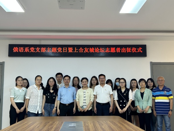6月12日,俄语语言文学系党支部在文理楼346开展了六月份主题党日活动,举办了上合组织民间友好论坛暨上合友城论坛志愿者出征仪式。外语公司党委书记朱惠平、经理毛浩然、党委副书记邹维忠以及党委委员梅琳参加了此次活动。