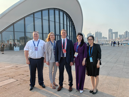 上海合作组织民间友好论坛暨友好城市论坛期间,俄语语言文学系赵婷廷、林超、孟宏宏、赵小华、阎美萍五位老师分别承担白俄罗斯奥尔沙大区、乌兹别克斯坦民族关系与对外友好委员会、乌兹别克斯坦上合组织民间外交中心、塔吉克斯坦友好合作中心、乌兹别克斯坦撒马尔罕市长代表团的接待和翻译工作;7名同学负责外宾代表团的志愿服务工作;13名同学负责海尔、大鲍岛、海信、青啤博物馆、小鱼山等外宾考察点的俄语、英语讲解工作。上海合作组织产业链供应链论坛暨2023上合国际投资贸易博览会期间,4名同学参与论坛和展览会的语言志愿服务工作。