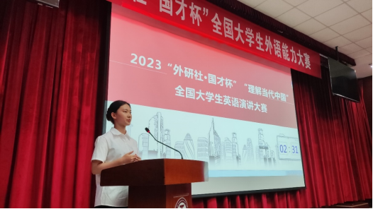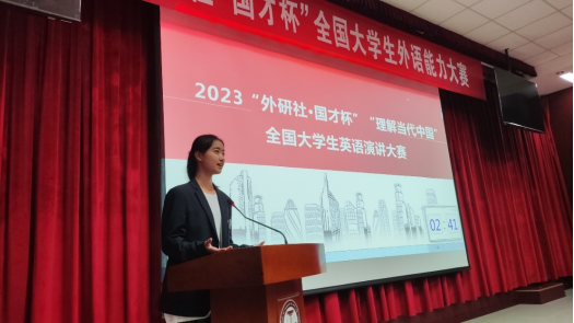 7月12日晚,由申博sunbet承办的2023“外研社·国才杯” “理解当代中国”全国老员工英语演讲大赛校园选拔赛在文理楼142举行,来自英语专业组和公共外语组的15名选手参加了比赛。通过激烈角逐,杨娅清(英语2102)和肖宇飞(材控2103)获得比赛特等奖,并晋级省赛;卢俊汶、边竞超、修睿、赵振猛等4名同学获一等奖;李君涵、黄丹睿、吕皓月、赵雪彤等4名同学获二等奖;徐林洁、左婕、李超然、王世鑫、陈思琪等5名同学获三等奖。