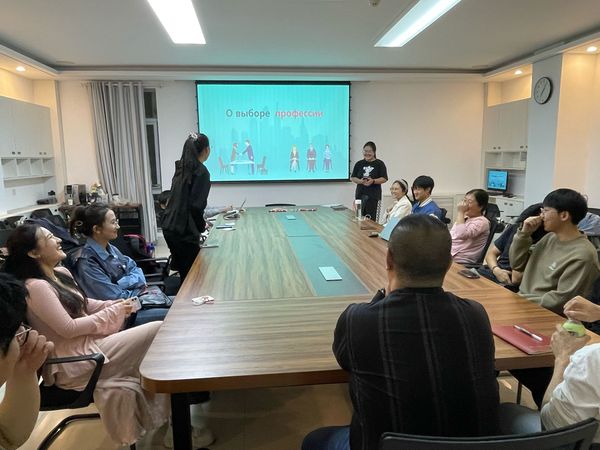 本期俄语角的主题是“Как выбрать профессию?”,主持人为大家讲述了什么是职业选择以及在未来的择业过程中需要注意什么,并以你画我猜的游戏形式拓展了到场同学对俄语中职业及职业选择的表述,赵小华老师进行了现场指导。