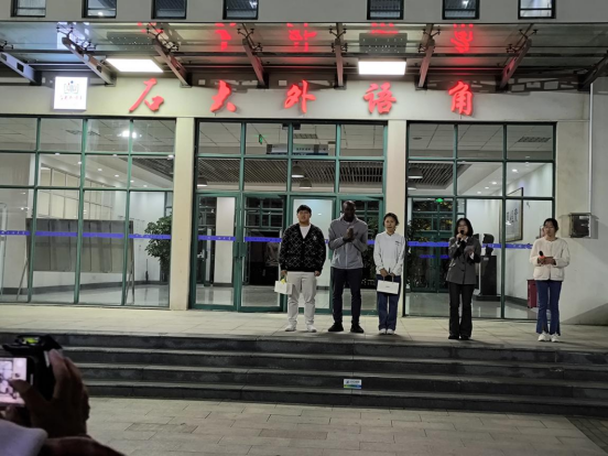 10月20日晚,2023-2024学年第二期“石大外语角”于文理楼U 型户外广场和文理楼346教室举办。本期活动由学术英语系和俄语系/日语、公司团委和办公室主办,英语专业2103班和日语2201班承办,以“The Impact of Digital Revolution on Education”和“中日文化对照”为主题。英语专业2021级本科生陈伟佳、王心怡和大学日语2022级的李炫宇、范宇轩同学分别担任英语角和日语角主持人。来自全校各专业师生自由参与,共计六百四十余人参加本次活动。