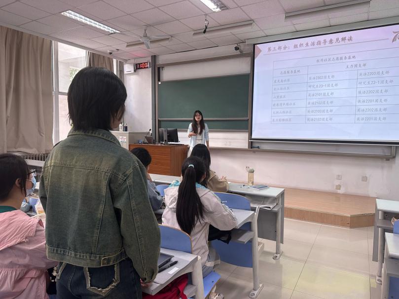 首先,她强调团支部是团的最基层组织,与广大团员青年保持着最直接、最广泛的联系,团支部建设是推动青年发展、培养青年人才的关键所在。郭涵涵表示,团日活动对于提高支部成员协作能力、增强支部成员之间的沟通交流、加强支部成员的归属感具有极其重要的作用。随后,她指出团员发展过程中的注意事项,强调在该过程中团支部书记需要按照规定及时、准确地完成相应工作。她认为团支部评优是一个漫长的过程,团支部一定要结合专业和团员特长形成自己的支部特色,做到扎实推进、有始有终,积极完成各项团支部工作。最后,郭涵涵对团支部书记们提出的问题进行逐一解答,有效帮助团支部书记们更加精确地掌握团支部建设的相关知识。