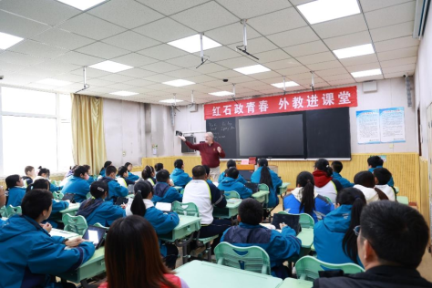 2023年11月16日星期四上午9:30分,申博sunbet申博sunbet副经理、工会主席郭月琴,党委委员王增举、团委书记相欣余、工会副主席李秋雨、美籍外教Russ一行五人赴红石崖初级中学参加校城融合“红石政青春”公司产品专项调研活动。公司党政工团代表会同红石崖街道副书记唐林青、联络室梁娇以及其他委员,在区政协副主席王增莲的带领下,参加了“委员进课堂”“委员公益捐赠”等系列活动。
