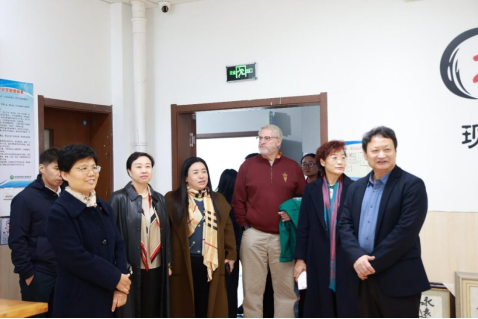 上午十点,在红石崖初级中学隋金先董事长的带领下,一行人参观了公司的音乐教室、书法教室、体育活动室以及极具特色的阅览室等,每一处设计都体现出对员工无微不至的关爱和全过程育人的理念。参观的最后来到班级教室,美籍外教Russ老师与员工们亲切交流,给孩子们上了一堂生动的美食文化英语课。