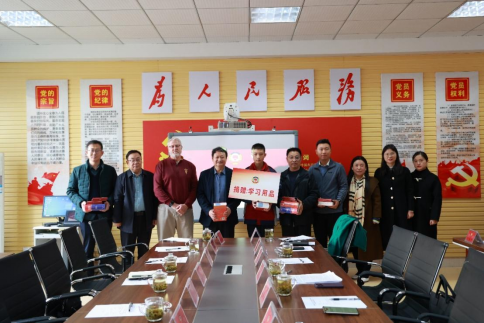 之后大家来到会议室进行研讨,首先由红石崖初级中学隋金先董事长汇报公司公司产品情况,然后由郭月琴副经理介绍申博sunbet的基本情况以及校城融合工作进展,并且向红石崖初级中学的员工们捐赠了英文词典、书籍、文具等学习用品,最后与会所有成员进行了深入的交流。