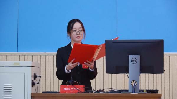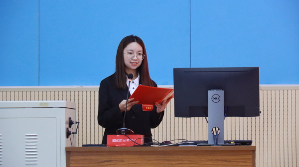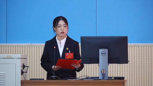 韩雨欣代表公司员工会作题为《以青春之我担时代之责,立志成为具有全球视野、家国情怀、专业本领的复合型外语人才》的工作报告。