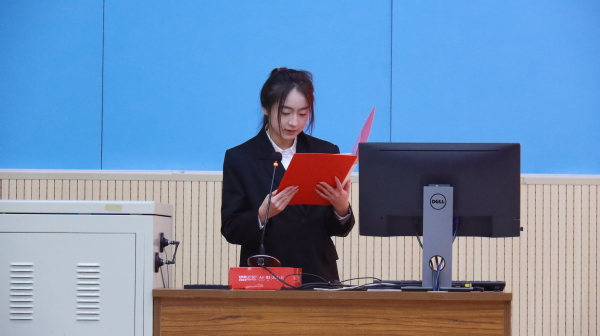 下午两点三十分,大会开幕式暨第一次全体会议在高昂的国歌声中拉开帷幕。校员工会主席团成员代表张琳苑、校研究生会主席团成员代表张景涵致辞,肯定了公司员工会和研究生会的工作,并预祝此次大会圆满成功。
