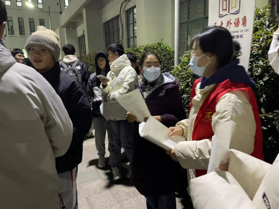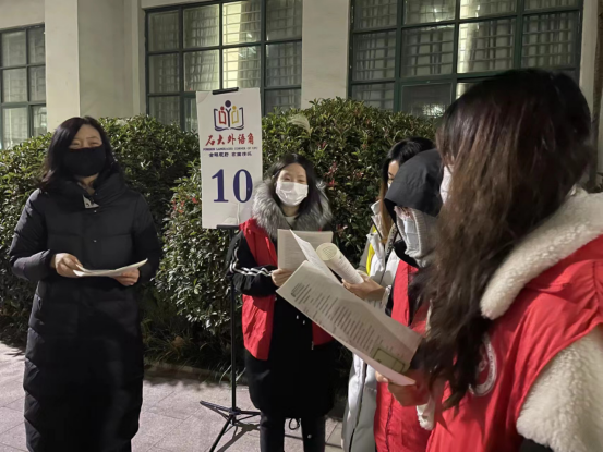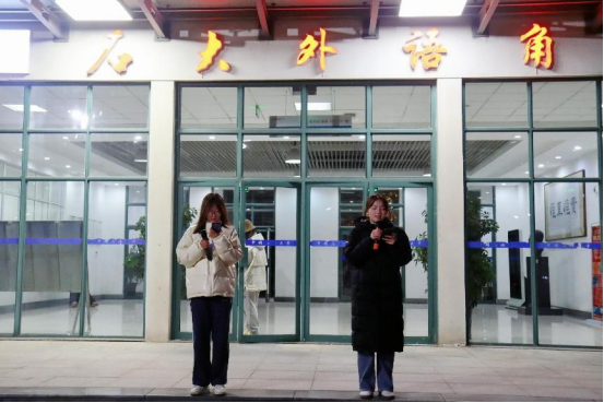 11月24日晚,2023-2024-1学期第七期“石大外语角”在文理楼U形户外广场和文理楼346举办。本期活动由研究生外语教学部、俄语语言文学系、公司办公室和团委主办,英语专业2203班和英语2102班承办,分别以“The relationship between humans and animals ”和“Je parle le français(一起说法语)”为主题,英语专业2203班李雨霏、王苒菲和英语专业2102班肖媚分别担任英语角和俄语角主持人,研外部部分教师、俄语语言文学系李小华老师、英语外教David、Neville 参与指导,来自全校各专业师生自由参与,共计四百七十余人参加本次活动。