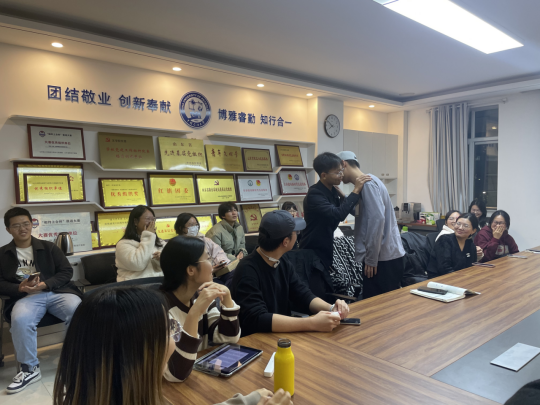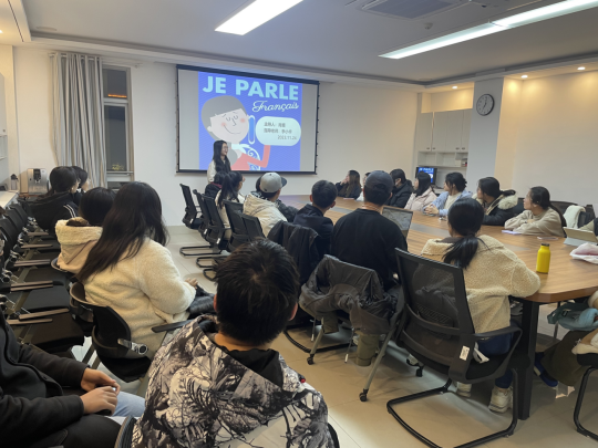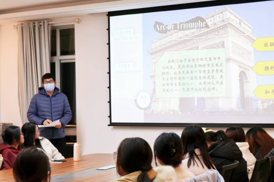 温暖初冬,“语”你相约,本次法语角的主题是“Je parle le français ”。活动分自我介绍、文化展示、员工游戏和趣味抢答四个环节。在自我介绍结束后,由两位同学为大家介绍美食和建筑中的法国文化,让在场的同学大为震撼,纷纷感叹法国美食的浪漫和法国建筑的宏伟。游戏环节大家一起进行了“后背传数”“逢三击掌”“听声识人”三个新奇好玩的游戏,大家的欢声笑语充盈满屋。