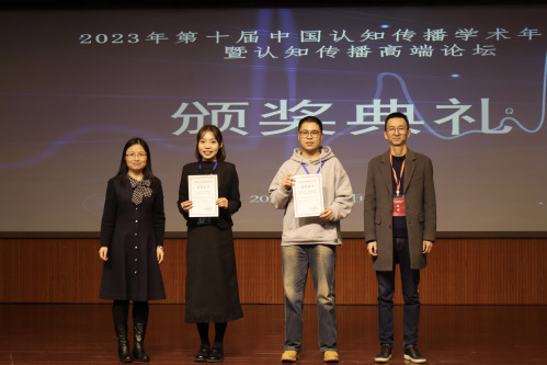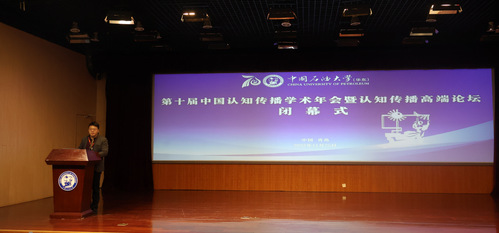 闭幕式上,各分论坛代表对各论坛进行总结概括,并宣布本次会议中第十届中国认知传播学会4篇获奖论文和年度优秀青年学者,其中任欢、邓若伊的《交互式影视剧中观众沉浸效果的研究——基于EEG实验》和周长耀、胡美桢、杨梅的《健康传播中不同信源说服效果的研究——基于青年群体的实验调查》获得员工组优秀论文奖;王江蓬、欧阳宏生的《论论认知传播研究的知识谱系——从零散性知识到自主性知识体系》和张兵娟、李阳的《中国本土思想资源的认知传播理论探索研究》获得教师组优秀论文奖。朱婧雯和陈广耀两位学者获得年度优秀青年学者奖。
