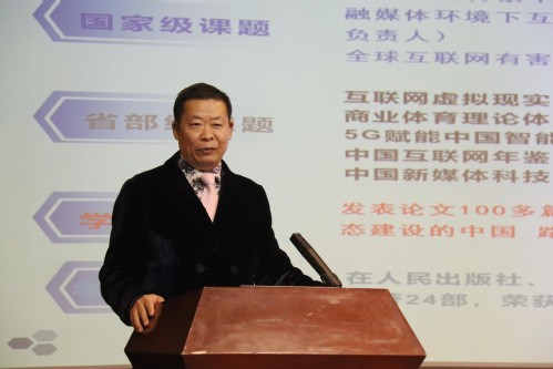 电信传播理论创始人、商业体育理论创始人、北京邮电大学曾静平教授以“从认知传播到认知战略”为题作主旨发言,曾静平教授首先指出新文科建设需要标识性概念创新、认知传播、电信传播、层级传播、海洋传播、周边传播、群聚传播、智能传播、新原始传播,逐渐汇聚形成中国特色“新大众”传播。他强调,认知传播既要海纳百川、兼收并蓄又要与时俱进,与时代共振,将技术创新认知与认知战略传播有机对接、生化熔融。曾静平教授表示层级传播是研究新闻传播理论的根脉基础,是解决技术创新、理论创新、产业创新、管理创新各个命题联合作业的独门利器。