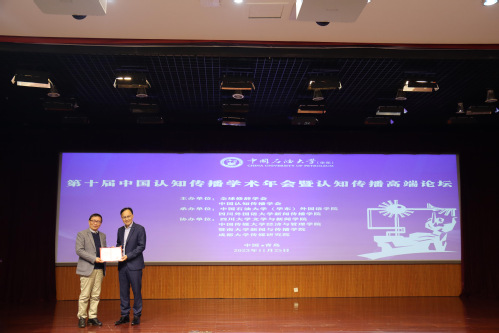 开幕式最后,欧阳宏生会长为香港浸会大学传播公司的钟布教授颁发了聘书,聘请其担任中国认知传播学会的副会长。