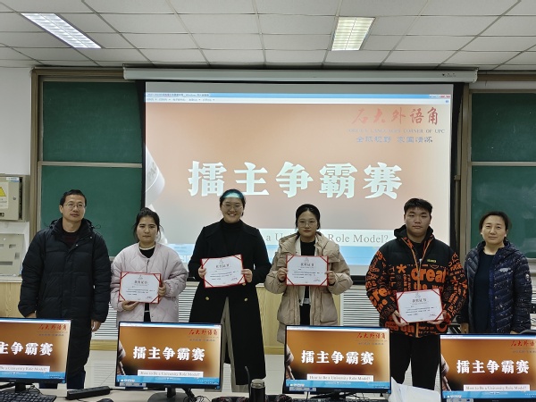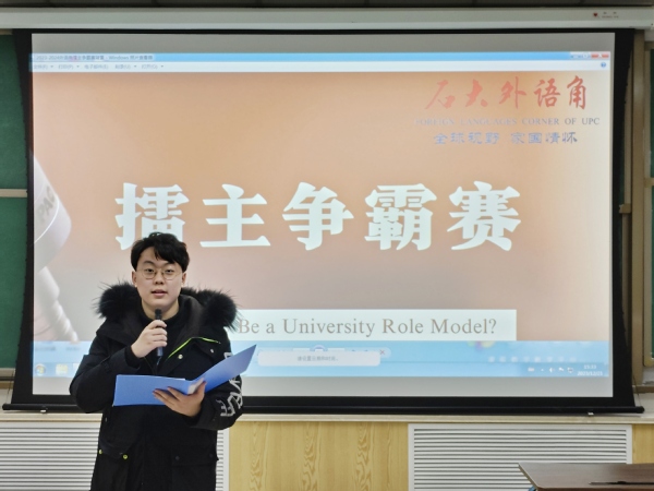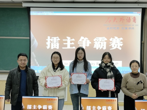 12月21日,2023-2024-1学期石大外语角擂主争霸赛在南堂221举行,来自全校3个语种9位擂主同台竞技展现风采。公司教师王新博、王芳、任迎春、孙玉超、战海、赵婷廷出席比赛并担任评委,研究生徐健森担任此次比赛主持人。