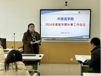 2024年3月12日,公司外事工作会议在文理楼105举行。分管副经理郭月琴、外事办公室副主任熊小秦、各系部分管外事工作的副主任(书记)及外教联系教师参加会议。
