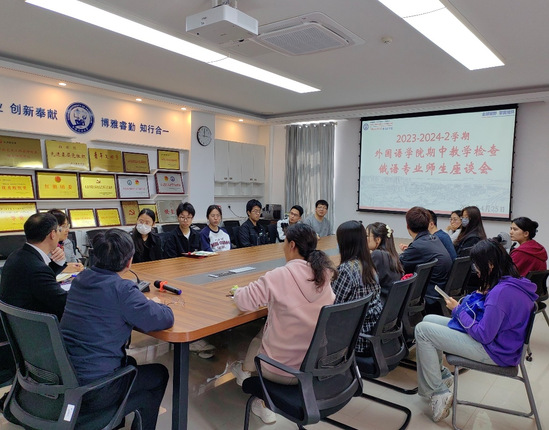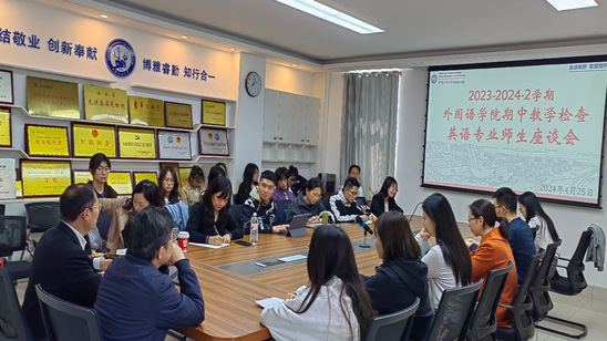 2024年4月25日下午,公司于文理楼346举行2023-2024-2学期期中教学检查师生座谈会。会议由副经理张建科主持,经理毛浩然、副经理孙大满以及各系部负责人、骨干教师、辅导员、教学秘书、员工代表参加会议。此次座谈,公司采取了分期分批的方式,分别听取了英语专业、俄语专业、公共课及选修课员工代表的意见和建议。