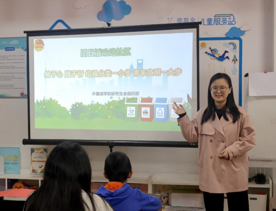 活动伊始,组织部副部长姜旭以“始于心·践于行·垃圾分类一小步·青年文明一大步”为主题,从垃圾处理的现状、垃圾的分类、如何做好垃圾分类三方面为大家详细生动地讲解垃圾分类知识,并带领小朋友们共同朗读《垃圾分类环保歌》,提高环境保护意识。
