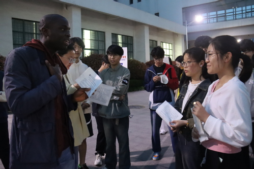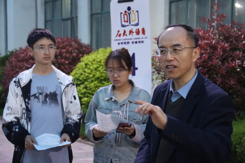 2024年5月10日晚,2023-2024-2学期七期“石大外语角”在文理楼U形户外广场和文理楼346举办。本期外语角由英语语言文学系、俄语系、公司办公室和团委主办,英语专业2201班和 承办,分别以“How to Develop a Positive Personality”和“法国香颂”为主题,英语2201班左婕和冯俊基和李靖禹、张诗棋分别担任英语角和法语角主持人,英语语言文学系老师、俄语系李小华、冯鸿燕两位老师及外教参与指导,来自全校各专业师生自由参与话题讨论,共计近四百人参加本次活动。