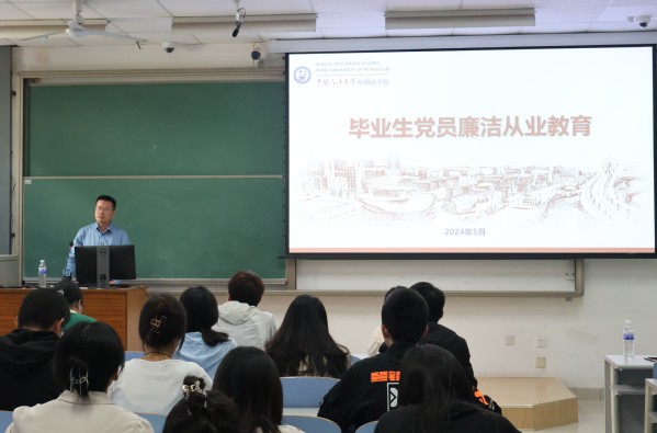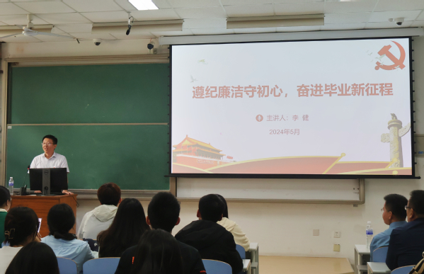 为筑牢毕业生崇廉尚洁的思想根基,扣好职业生涯的“第一粒扣子”,推动党纪学习教育走深走实,2024年5月29日上午,公司在南教118举办2024届毕业生廉洁从业教育讲座。本次讲座邀请公司纪委监督检查室主任李健作专题讲座,公司党委书记朱惠平、党委副书记邹维忠、专职组织员王增举、毕业班辅导员梅琳、相欣余以及2024届毕业生党员和其他年级员工党员参加,讲座由翻译硕士研究生第一党支部书记肖遥主持。