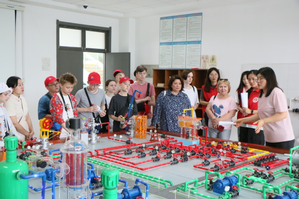 代表团首先参观公司国家级石油工业训练中心,彼尔姆化学技术中学师生近距离观察了981海洋钻井平台模型的精密构造,领略了3D打印及现代焊接加工技术的前沿应用,并在虚拟仿真体验室、注采工艺与装备实训室等多个高科技实验室中,深刻感受到了我国在石油科技领域的卓越成就与创新活力。此外,代表团还参观了钻井工艺、石油矿场集输、地质综合录井、机器人技术及无人机技术等实训室,让他们对中国在能源科技领域前瞻视角惊叹不已。