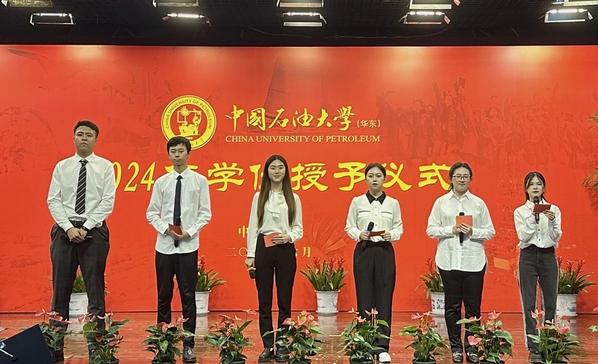 英语专业王惠燕、张坤宇、马然朋,俄语专业刘军赫、曹源、高迪作为本科生代表发言。他们以“成长之路”、“友谊之桥”和“爱情之花”为主题,分享了他们在石大、在外院四年的难忘经历。话成长,从刚踏入大公司园的迷茫困惑,到员工工作、志愿服务、实习实践的累累硕果,他们找到了自己的方向,并为之努力奋斗;话友情,是共同的理想和追求将她们紧紧联系在一起,一起学习、一起进步,成为了彼此生命中不可或缺的朋友;话爱情,他们一起在图书馆里挑灯夜读,一起在操场上挥洒汗水,一起在舞台上绽放光芒,相互鼓励,共同成长,成为了彼此生命中最重要的依靠。他们表示,是公司和老师的悉心栽培,是家人和朋友的陪伴指引,使他们不仅收获了知识和技能,更收获了自信和勇气,为未来的人生道路打下了坚实的基础。