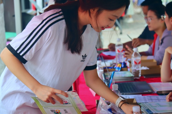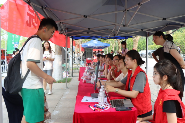 本次迎新工作主要包括资格审查、新生签到、易班注册以及校园卡等相关材料的发放,全程配有工作人员进行现场指导。在宿舍,志愿者为报到新生搬运行李;在路口,志愿者耐心地向新生提供引导、指示和答疑等服务。他们尽职尽责、热情洋溢,用暖心的服务为新生的“开学第一天”保驾护航。