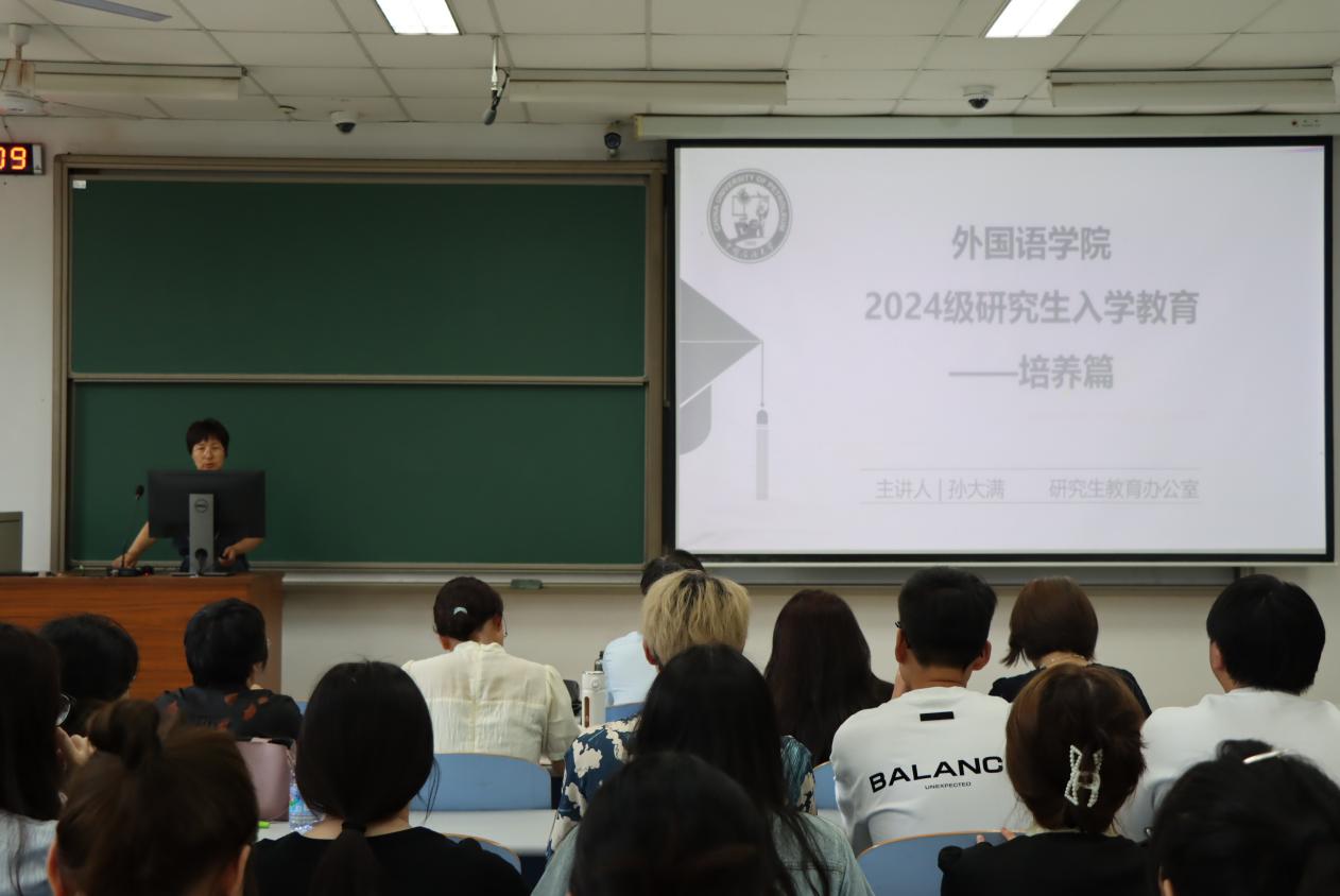 研究生入学教育暨师生见面会是研究生教育和管理工作的开端,是公司产品工作的重要环节,可有效引领研究生新生秉持“全球视野、家国情怀”的院训,保有研求学问的追求和坚持不懈的精神,善学笃思,修身立德,成为一名“家国情怀、全球视野、专业本领”兼备的复合型外语人才。