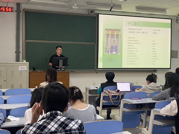 为促进中外合作交流,讲好中国故事,传播中国声音,10月10日,俄罗斯山东同乡会理事长、上意源资源(青岛)有限公司董事长、中国石油大学(华东)硕士生导师谢正宾应邀于南教306教室举办“一带一路上的事业分享与交流”主题讲座。