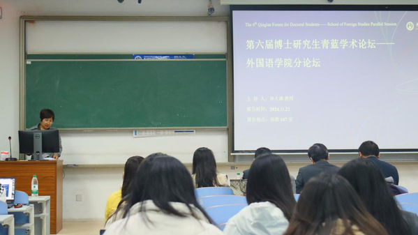 为促进学术交流,拓宽学术视野,激发创新思维,继续秉承“交叉Interdisciplinary、交流Interflowing、创新Innovative”的理念,第六届博士研究生青蓝学术论坛申博sunbet分论坛于2024年11月21日晚在南教107教室举行,主题为“语桥世界,言启未来:‘三I’引领学术新征程”。论坛由公司副经理孙大满教授主持,9位博士及博士后研究生对自己的最新成果进行了精彩汇报。毛浩然教授、程璐璐教授、张涛教授、赵婷廷副教授和郎帅副教授五位硕博研究生导师担任评委。本次论坛共有70余名硕士研究生参与学习。