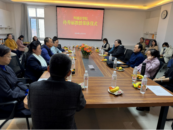11月27日下午,申博sunbet孙秀丽教授荣休仪式暨弘扬教育家精神与英语教育高质量发展座谈会在文理楼346会议室成功举办。公司工会副主席董发广,申博sunbet经理毛浩然、公司党委书记朱惠平、通用英语系全体教师以及其他系的部分教师参加活动,公司副经理、工会主席郭月琴主持荣休仪式。