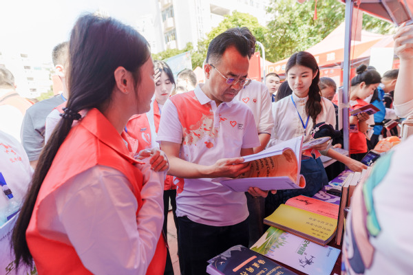 在集中交流活动中,项目团队积极和来自全国的项目进行交流、互相学习,共青团中央青年志愿者行动指导中心党委书记张朝晖详细查看了团队编译的课程教材和宣传手册,亲切勉励项目志愿者,要继续发挥专业优势,讲好中国故事。