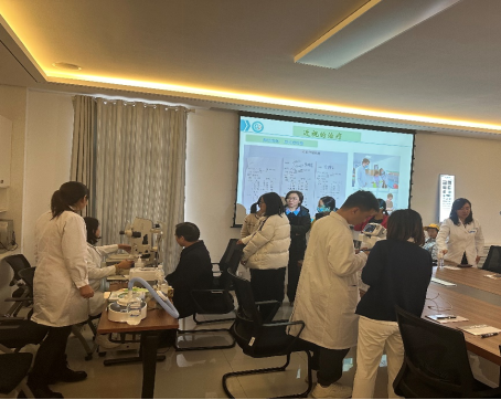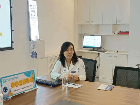 活动伊始,王娟主任首先进行专业爱眼知识讲座,内容涵盖眼部的基本知识与生理功能、常见眼科疾病(如干眼诊断与治疗;各种类型屈光不正诊断与治疗;近视预防及治疗;视疲劳诊断及治疗;白内障、青光眼、黄斑变性、高度近视视网膜病变的早期筛查及治疗建议等)的病因、症状、诊断方法与治疗手段;近视防控的最新研究成果与方法(如角膜塑形镜、低浓度阿托品眼药水、视觉训练等)。