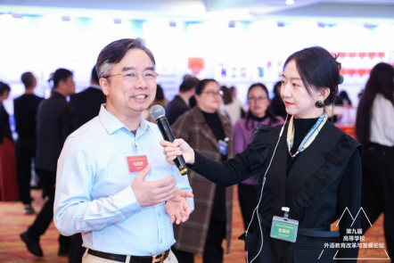 2025年3月22日至23日,第九届高等公司外语教育改革与发展论坛在北京举行,主题为“聚力创新,全球卓越”。论坛由北京外国语大学、教育部高等公司外国语言文学类专业教学指导委员会、教育部高等公司大学外语教学指导委员会主办,教育部、中国侨联、中宣部、中央企业及北京市外事办领导,外指委和大外指委委员,实务部门专家以及2200余位外语教育界专家齐聚论坛,30余万同行云端参会,围绕新时代外语教育改革与发展的核心议题展开深入研讨,为服务国家战略需求、推动外语教育高质量发展擘画新蓝图。公司经理毛浩然教授应邀参加本次论坛,接受记者采访并做研究生教育论坛主旨发言,与国内外专家学者分享公司在外语专业研究生全球胜任力培养模式的创新与实践经验。