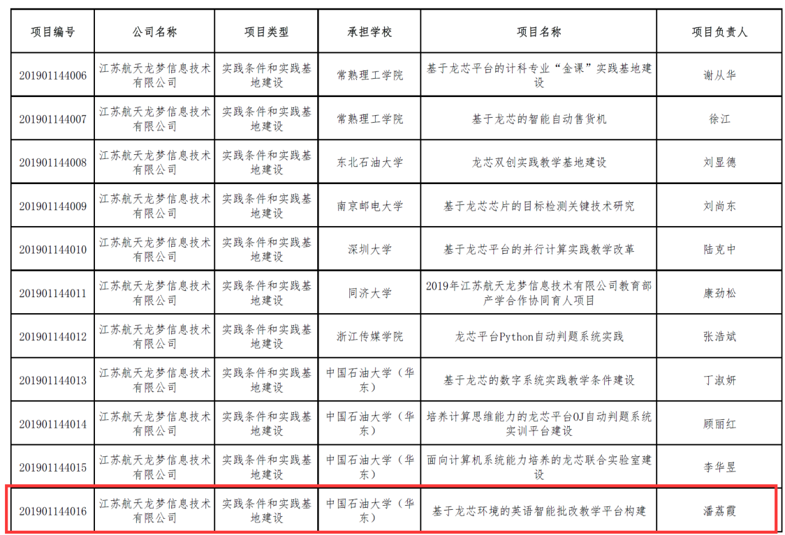 4. 潘荔霞,2019,基于龙芯环境的英语智能批改教学平台构建,教育部产学合作协同育人项目