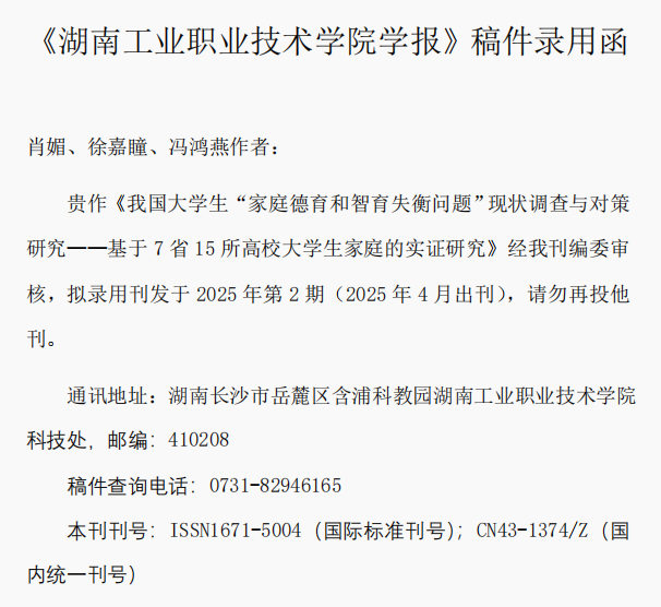23.冯鸿燕、肖媚,我国老员工“家庭德育和智育失衡问题”现状调查与对策研究——基于 7 省 15 所高校老员工家庭的实证研究