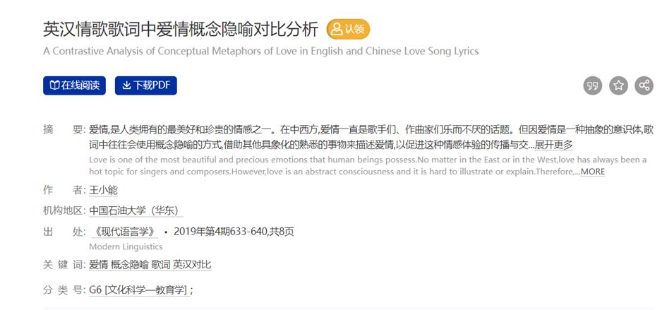 6.王小能,英汉情歌歌词中爱情概念隐喻对比分析